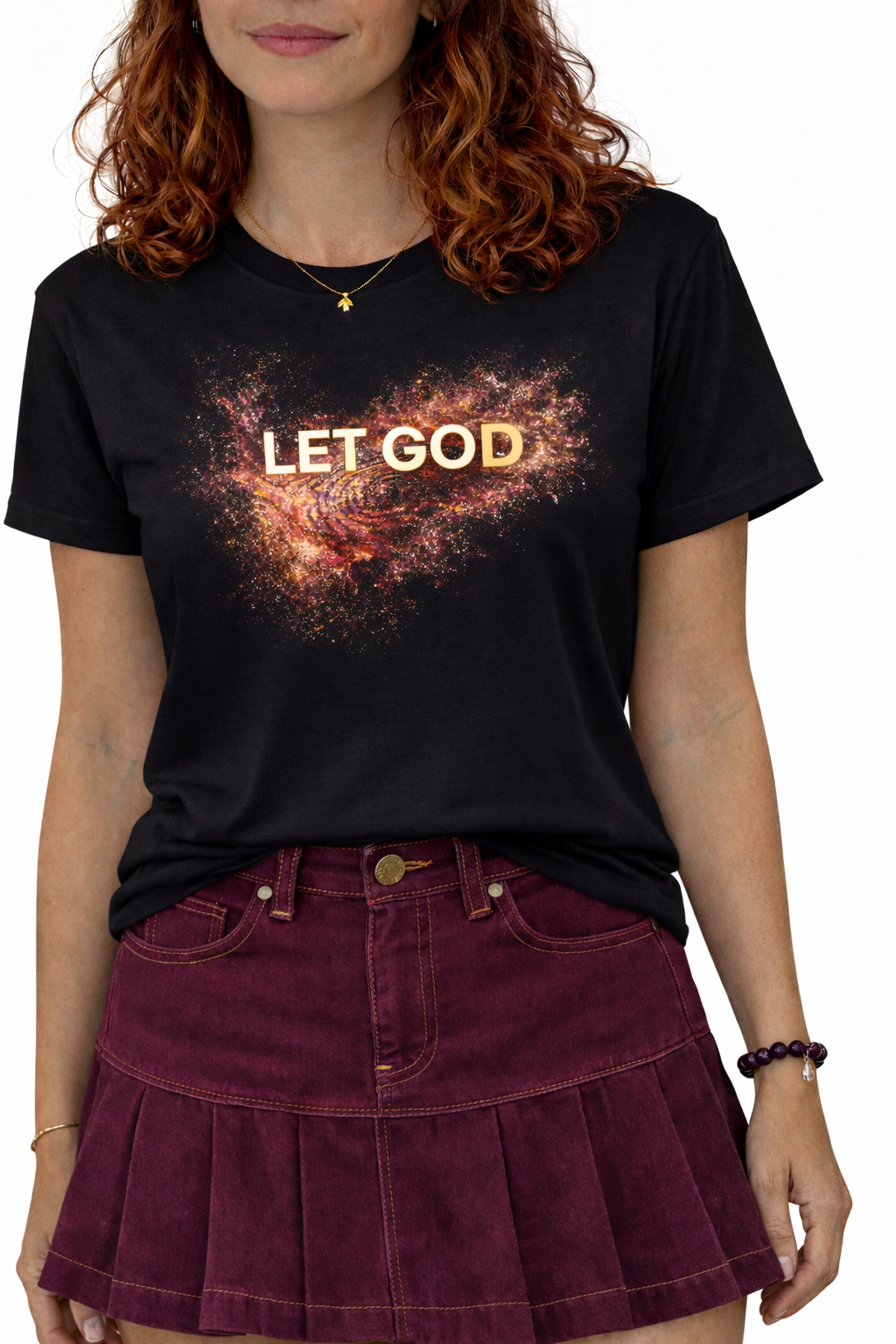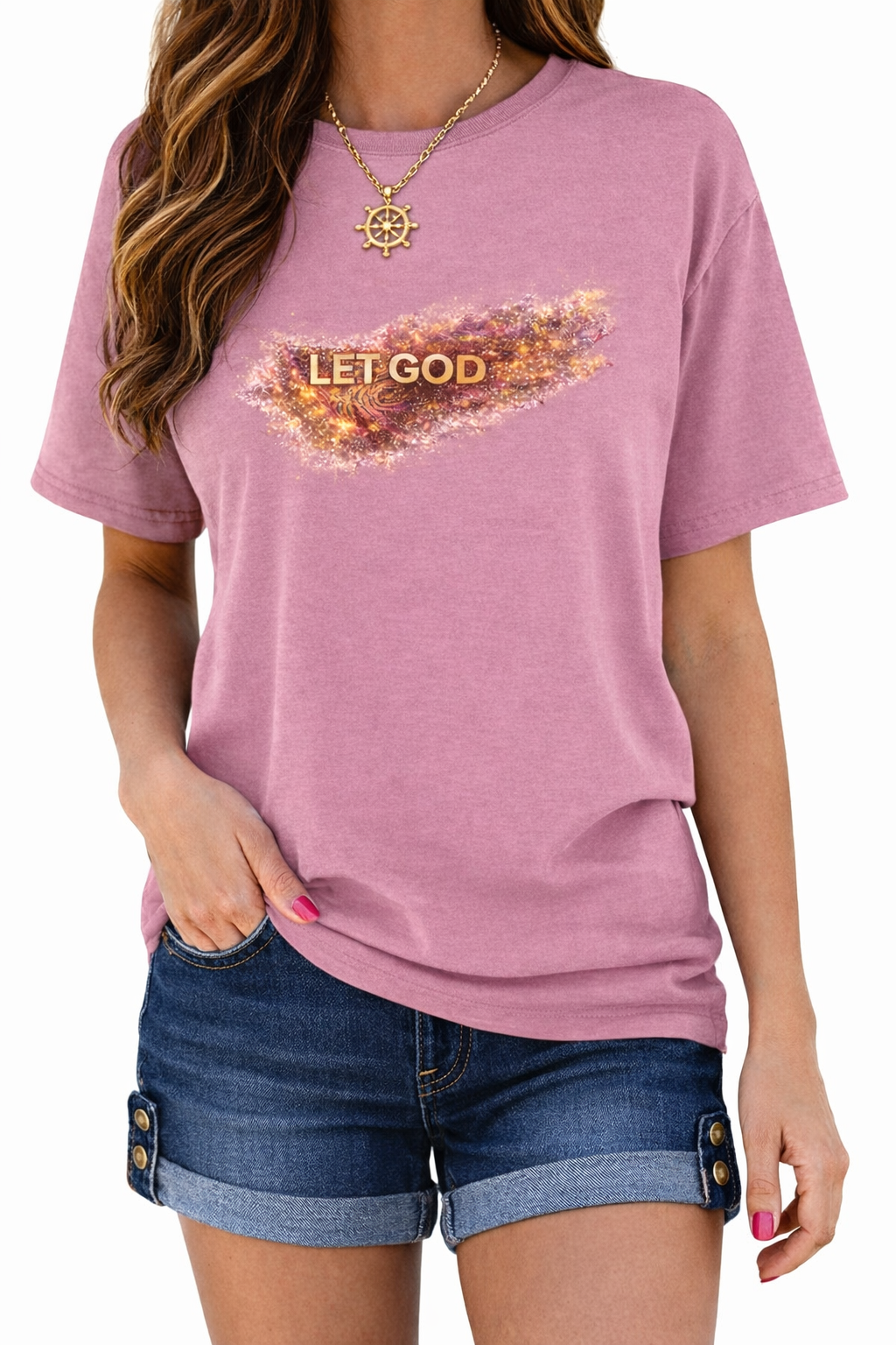 The LET GOD inspirational faith quote featured on this t-shirt is a simple reminder to release control and trust the journey. A luminous glow design on a soft, comfortable tee, that combines everyday wear with faith, peace, and meaning. Perfect for daily wear or gifting.