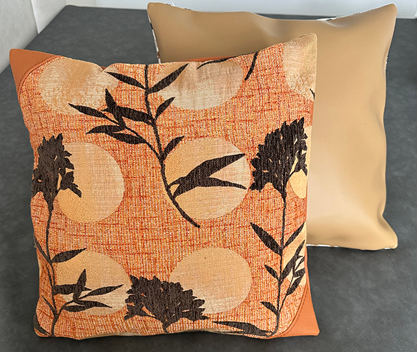 Style them two ways: each cushion features a dual-sided design—one side in upholstery-grade patterned fabric, the other in soft, complementary vegan leather—so you can flip the look to match your mood, season, or setting.